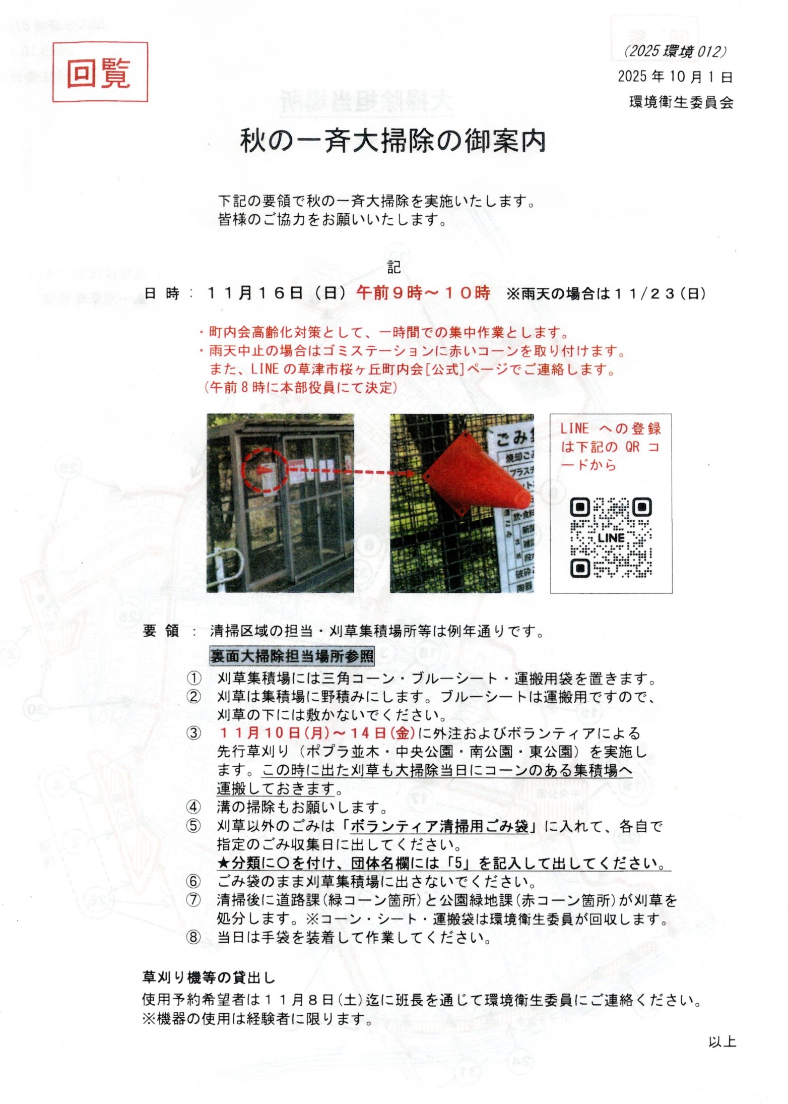 10月に各戸配布しました『桜ケ丘 暮らしの 110 番』の内容に一部修正があります。